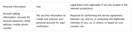 This section provides more details about the types of personal information we collect from you and why. For users residing in the United Kingdom, European Economic Area (“Relevant Jurisdictions”), this section also specifies the legal basis on which we rely to process your data.