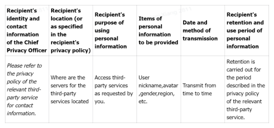 (1) Third parties that provide support for the service, including payment/logistics processing partners, cloud service providers that process the information specified in this policy on their servers to provide services, support related communications, etc. All companies providing services to us shall not retain, use or disclose your personal information for any purpose other than providing services to us.